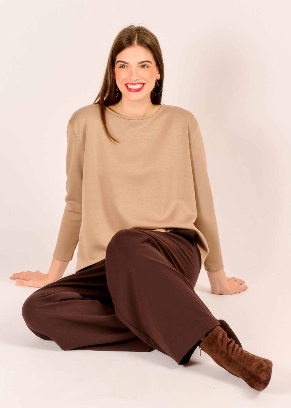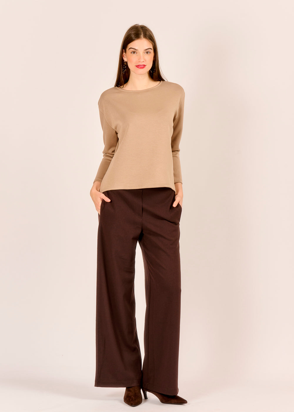 Dieses edle Shirt überzeugt mit raffiniertem Rücken und bietet eine sportliche, moderne Alternative zur klassischen Bluse. Besonders stilvoll lässt es sich mit einer edlen Pantalone für die Feiertage kombinieren – für ein bequemes Outfit, das Komfort und Eleganz mühelos vereint.