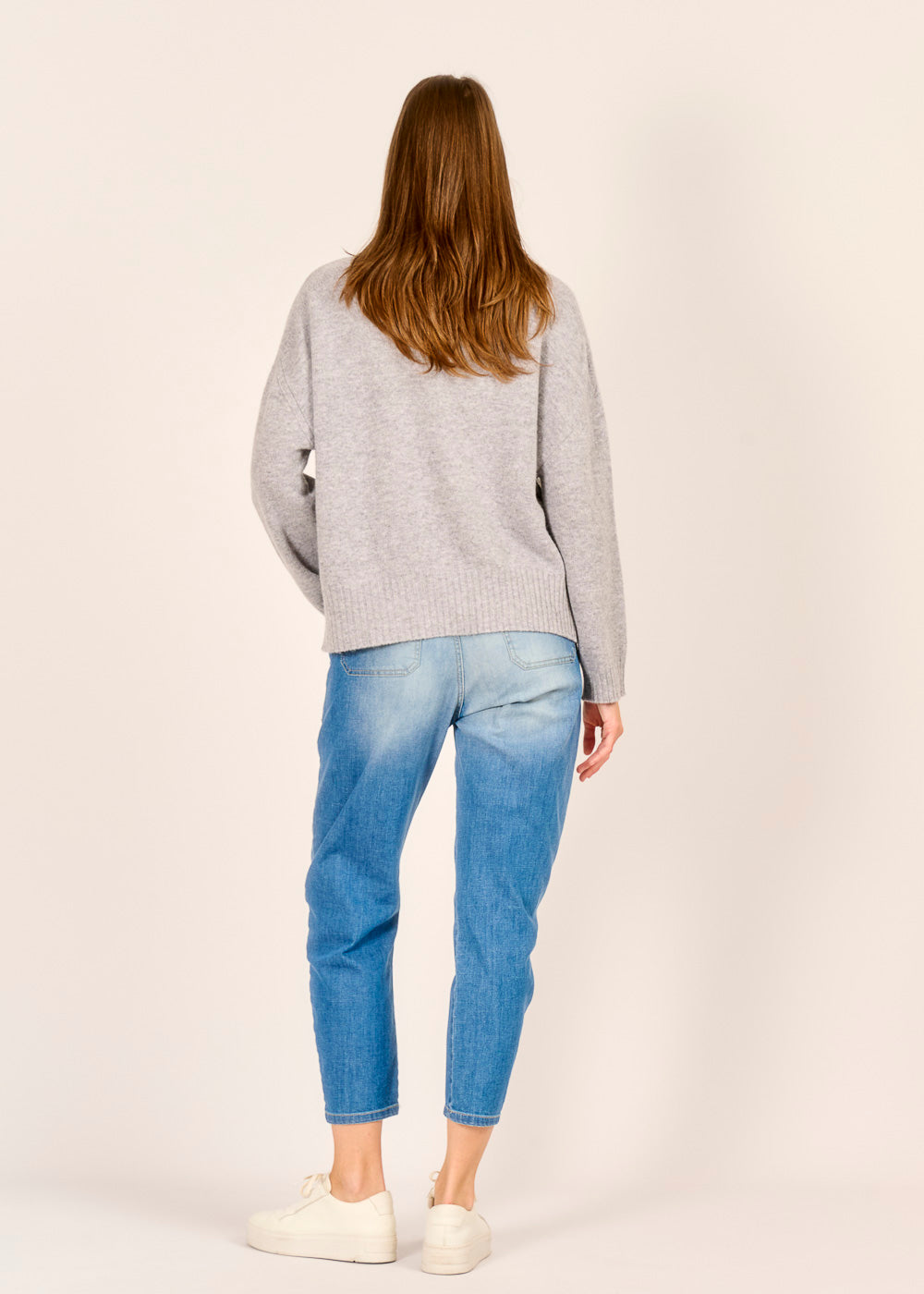 Der Pullover in edlem grigio besticht durch seine schlichte Eleganz und die markante Ziernaht, die für einen modernen Akzent sorgt. Das weiche Material schmiegt sich angenehm an und bietet hohen Tragekomfort. Mit seinem zeitlosen Design lässt er sich vielseitig kombinieren – von casual bis chic. Ein stilvoller Allrounder, der in keiner Garderobe fehlen sollte.